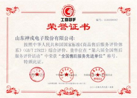 神戎公司榮膺“全國售后服務先進單位”榮譽稱號