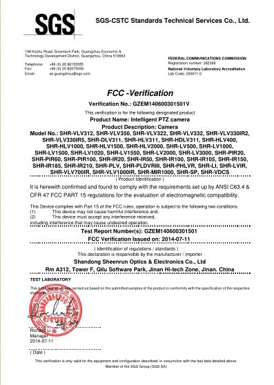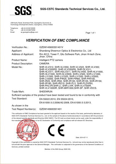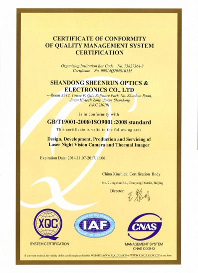 • Sync Zoom Laser Night Vision Camera Certificate